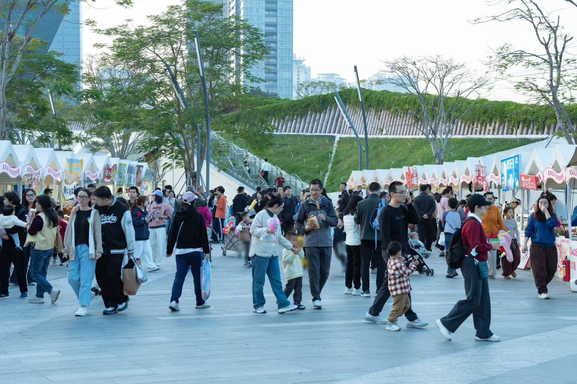 莲花山公园紫陌书吧、深圳湾公园白鹭坡书吧的“宋锦珍珠画”非遗手作,让市民在飞针走线中感受技艺之美;深圳湾公园迁鸟书吧的“果壳摇铃”手工体验,让市民将自然纹理化作随身声景,独享清幽时光。此外,大型复合节庆活动更是将传统玩出了新花样:东湖公园持续二十余天的“2025深圳菊花赏”,以繁花菊艺串联岁末年初,打造了一场跨越时空的视觉盛宴;光明区明湖城市公园的“草地迎新·马上有福”欢乐汇,融合马面裙快闪、非遗手作、无人机足球与草地音乐汇,成为传统与潮流对话的窗口。